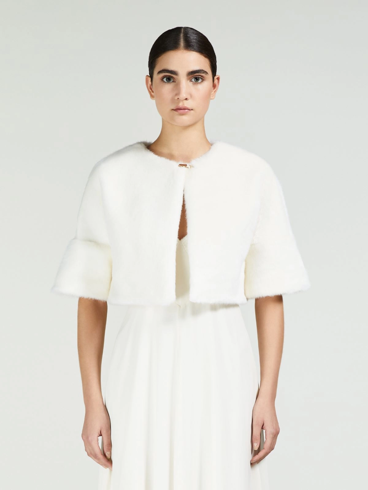 Bolero morbido e piacevole al tatto, caratterizzato da taglio cropped in vita.