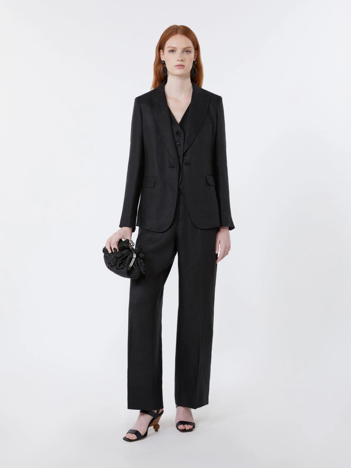Tessuto 100% lino; fodera 100% cotone; fodera maniche 52% poliestere, 48% viscosa.
