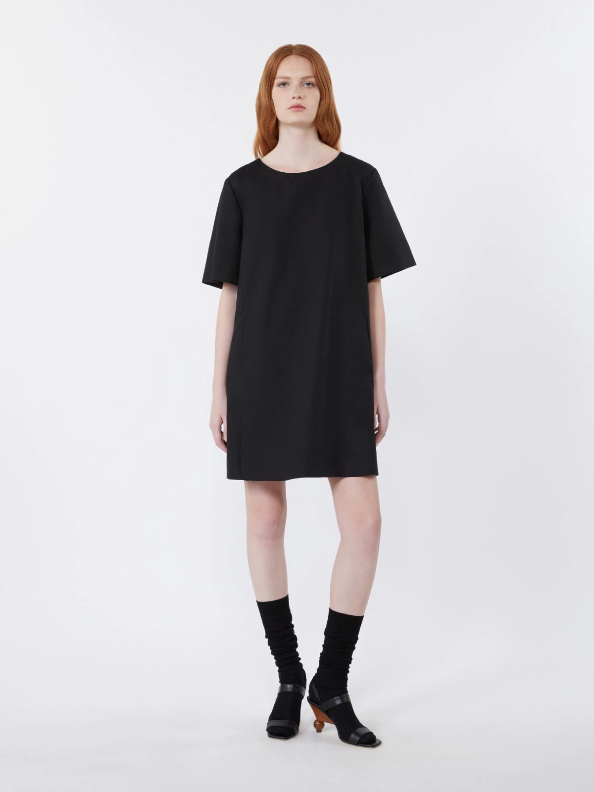 Abito corto dalla silhouette dritta con motivo di tagli sui fianchi.