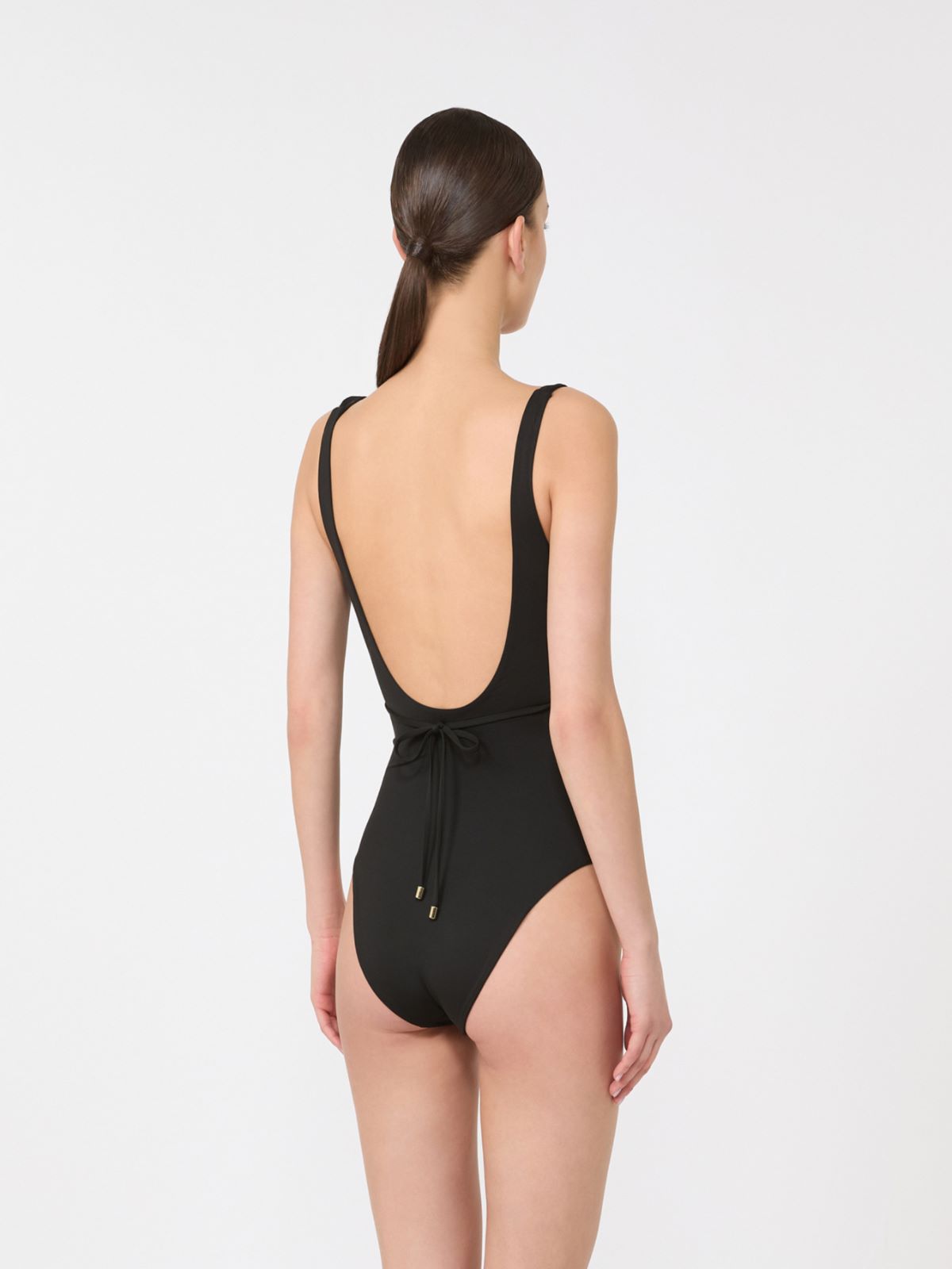 Costume intero modelloolimpionico con lacci incrociati in vita da annodare sul retro. Il tessuto elastico quick dry con protezione UPF 50+ e controllo dell’umidità, dona una piacevole sensazione di comfort su tutto il corpo.