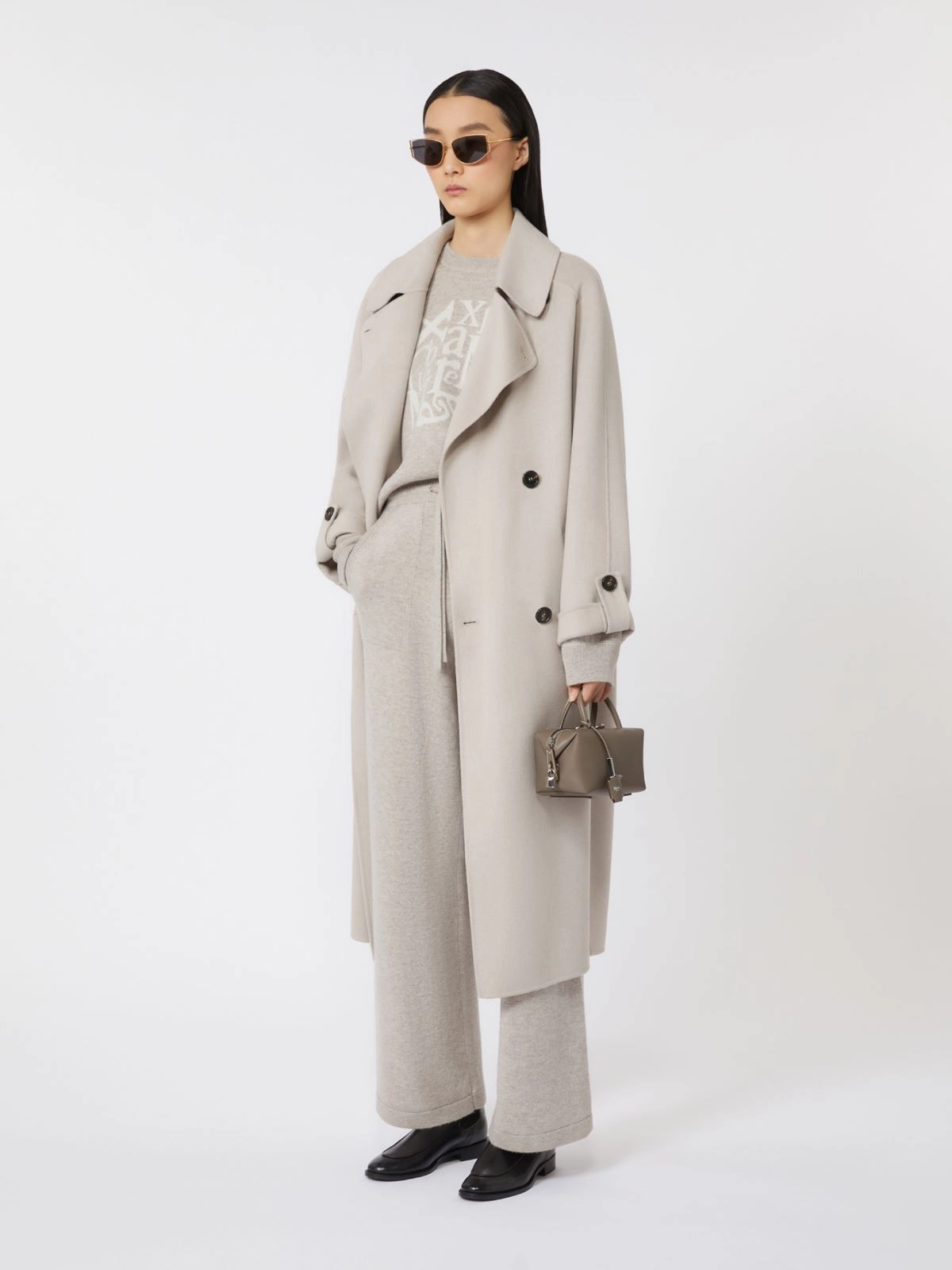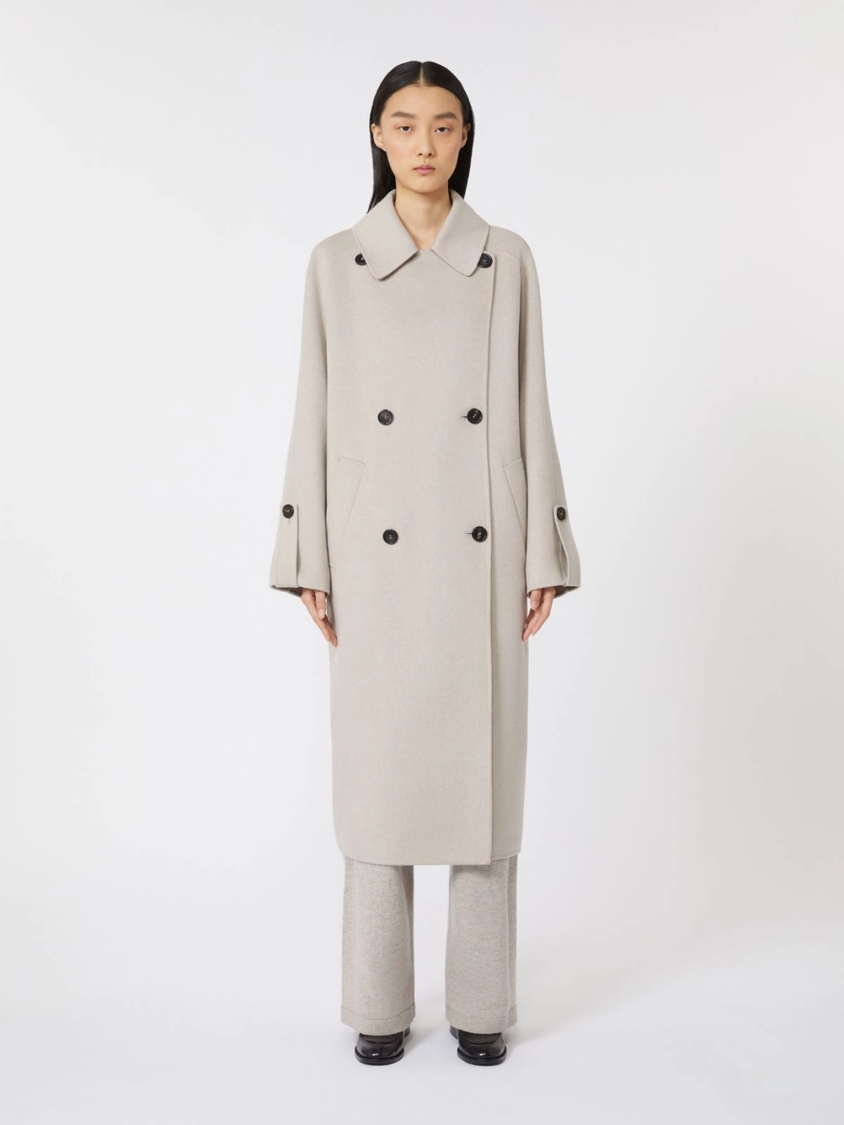 Cappotto lungo dalla linea dritta con maniche lunghe raglan dalla linea a martello.